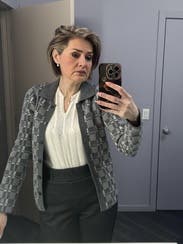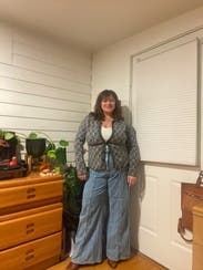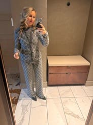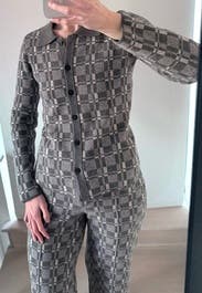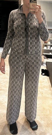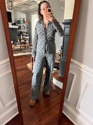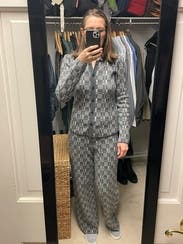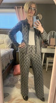 Wore this with the matching pants. Super cute set, but almost too warm for Texas!