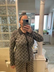 Great, comfortable set. Can size down due to sweater material so it has a generous fit. I paired with pants for work one day and an election watch party another day.