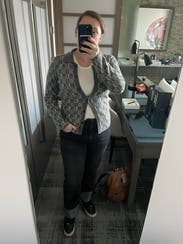 I really liked this cardigan even though it ran big and was stretchy. Gray is not my color
