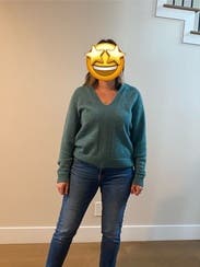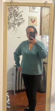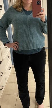 I really loved the color and neckline of this sweater, and unique color. It was a nice work sweater.