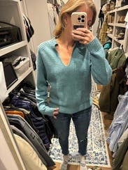 I loved this sweater. If it weren't getting warmer in my area, I would probably purchase it. It has a beautiful color and a unique collar that helps it stand out from all the other greenish sweaters out there