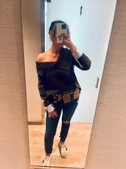 LOOOOVE this. It's the perfect mix of elegance and casual. This time I wore it to a Christmas party over skinny jeans (leave me alone) and a short necklace. it's a little shapeless without styling so I half-tucked it. Would probably look cute belted, too. The knit part is very soft and the neckline is nice an slouchy without needing to be fussed with a lot. Will probably buy this someday because I keep renting it.
