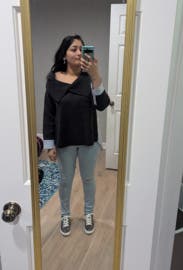 Expected more from this sweater, but something about the fabric / shape just didn't sit very flatteringly on me. Felt like it needed a lot of styling to look good. Really wanted to like this one more!