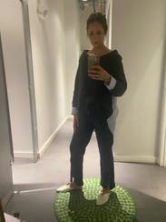 Truly loved how unique this one was. If you are trying to decide to go up or down in size definitely go down. Wore during the day and in the office!