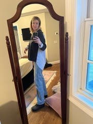 Wore multiple times with leggings in third trimester. Super comfortable and draped nicely.