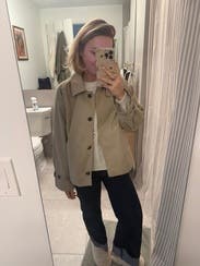Liked this piece for shoulder season- a bit boxy for me but overall easy to style and cute!
