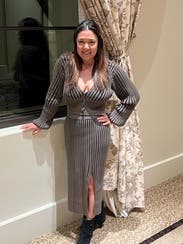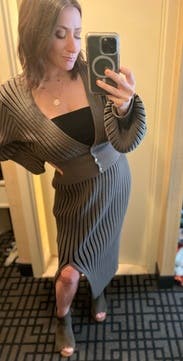 I think if this was a size down I would have enjoyed it more (or found the right bra). The top itself if beautiful and a great seasonal transition piece. With some boob tape, it would have been perfect. Would consider renting again!