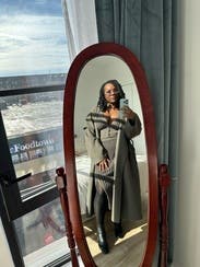 Wore with the matching skirt and loved it as a set. I usually wear a medium and this was a bit snug when buttoned so I wore open over a cropped knit black cami. The sleeves are a statement and got in the way a bit, but overall I'm glad I tried this set. It was surprisingly warm and comfortable and the material feels expensive.