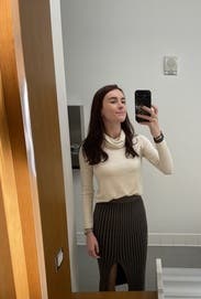 Pair this pleated knit skirt by NAADAM with your favorite oxford and knee-high boots to slay your office style.