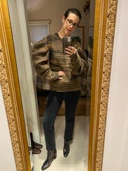 Absolutely love this sweater. I get so many compliments on it- the sleeves make the outfit! It’s so warm also. I’ve had it since thanksgiving and don’t want to let it go!