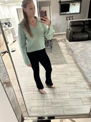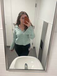Loved this sweater. The collar and sleeves are fun but the bell sleeves are a big hug for like work/typing
