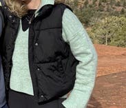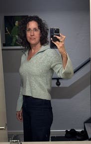 Comfy cropped sweater. Good color and weight for Spring.