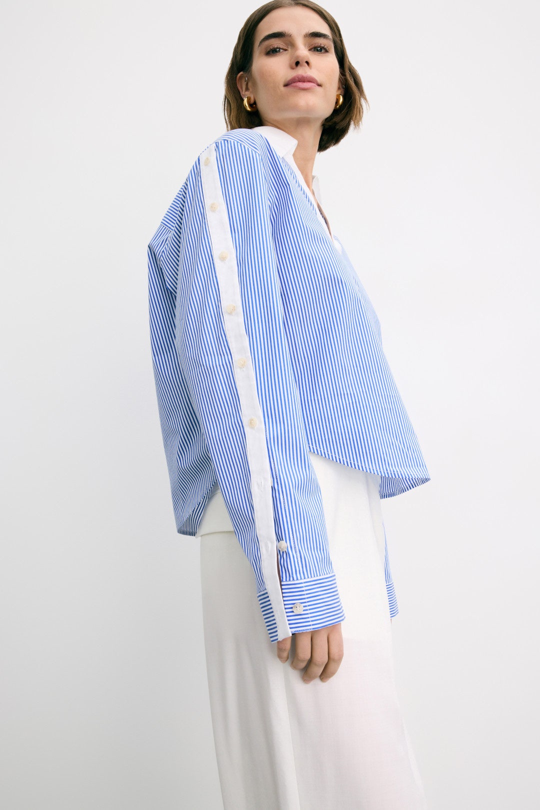 The Woven Polo with Button Detail by NAADAM combines timeless polo styling with a modern twist, featuring a buttoned side slit for added flair. Pair it with tailored trousers and loafers for a polished, everyday look.