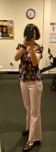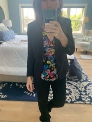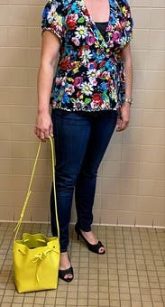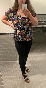 This required a shirt under so it wouldn’t be too revealing, but was great with it! Could be worn with jeans out and about or slacks and heels for work.