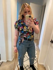 Loved how cute this top was! It was a little big in the chest area for me, so I wore a bralette under the shirt. I ended up tucking it into my jeans, but loved the overall look!