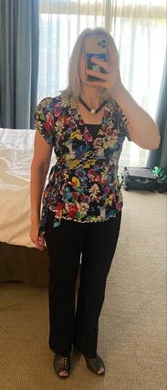 Lovely top I wore around Europe sightseeing. Nice pattern and flowy but I needed an undershirt as it was too low cut otherwise