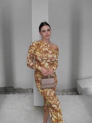 Elevated desert look. I wore it to a brunch and it was forgiving on the stomach w food but still looked high end. I thought it was a fun look w the exposed shoulder.