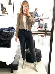 the blazer is seriously fun. the cropped hem ups the edge. size down as it runs big.