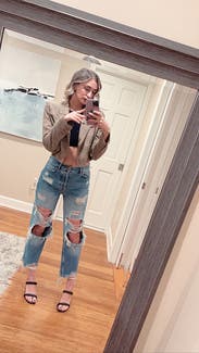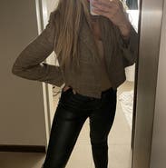This crop jacket is cute and can be styled many different ways but it was too big for my petite frame . The crop was very loose in my waist