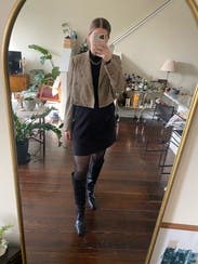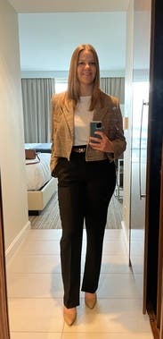 I work in marketing and hate wearing traditional blazers bc they feel stuffy to me. I also never wear browns like this - so I was way out of my comfort zone with this rental and it paid off! This bad boy made me a blazer believer - I almost kept it! I got a lot of compliments and it was a perfect fit with high waisted jeans and a bodysuit! 10/10 would rent again and in any color!