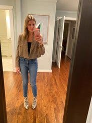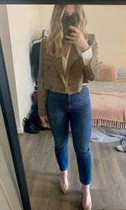Everything about this cropped blazer was perfect. Not too cropped not to long, it hit right at my waist and the material was perfect! Super versatile and can be worn casually or dressed up. Such a great fall piece.