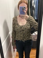 Nanshuka can do no wrong!! This top was so fun to style, I was really sad to return her. I agree with the other reviews, the buttons can be a little wonky & pull on each other unless you size up. I rented in a small & medium, the medium fit much better. I wore her multiple times, always with a high waisted pant. She is incredibly versatile and easy to go from funky fresh to cowboy cutie to work from home.