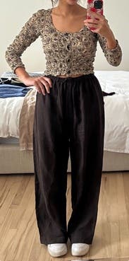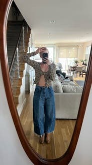 honestly a cute lil top I would have never picked up on my own. scrunchy and textured and very cool. I have a short torso so it was perfect but it was very cropped!