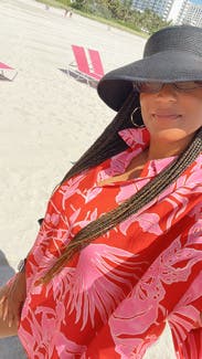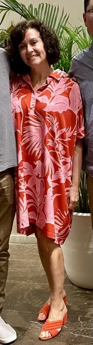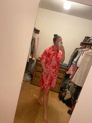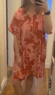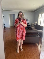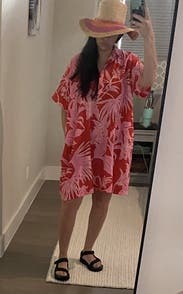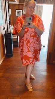 Hoped to take on the beach trip, but I don’t love it and sent it back. The print is great and the cut obviously very comfortable and forgiving. But the fabric is heavier than I want and not breathable so not a great choice for my hot beach trip, And it’s pretty unflattering.