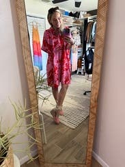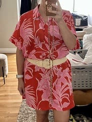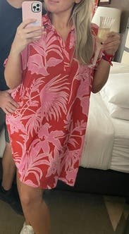 Love this so much. Roomy...maybe could have sized down but like the comfort. Super versatile for someone who loves the pops of color. Wore at the beach one day and to work the next. The material feels really lux and does not wrinkle easily...great to vaca packing. Loved so much that I purchased almost immediately.