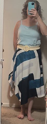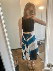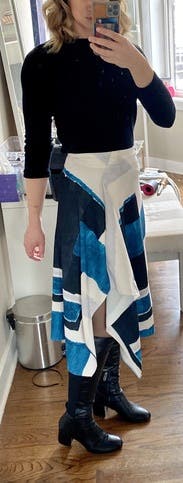 A versatile, elegant and fun skirt. Liked the fit and asymmetrical length both. Would rent again!