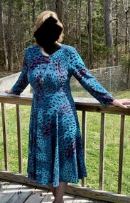 The neckline kept folding over on top of the absurd amount of fabric. The print also had more brownish colors in it than I realized from the pictures here.