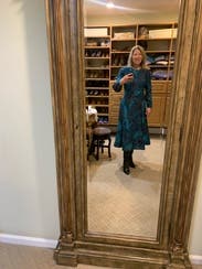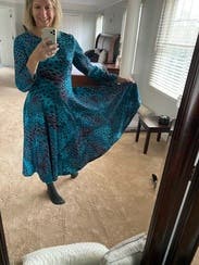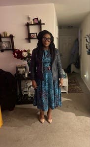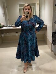 So as a lot of folks said this dress is on the matronly side, which I didn’t realize until my order was well on its way, lol. Ultimately, for the event I was going to (awards ceremony for lawyers) it worked out great — though I added a statement necklace and navy leather jacket to jazz it up — also it was a perfect fit, which was awesome, considering I’m 4 months pregnant 😊