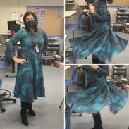 This was a great dress for school. Got lots of compliments. The top was a little snug around the girls but I still wore it. I loved how "twirly" the dress was and the fabric was heavy. Beautiful dress!!