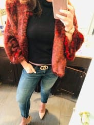 Completely obsessed with this red faux fur jacket! It's a showstopper!!