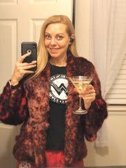 This is me trying it on as soon as I got it in my Wonder Woman shirt and sweatpants with my after work cocktail. I literally didn't want to take it off! It is so awesome and can't wait to wear this for a week or so here in snowy Colorado!