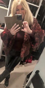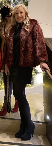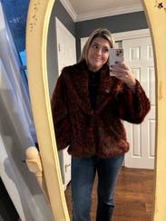 This very bright red animal print coat works almost like a mink stole! It takes a black turtle neck and black pants to next level! It's very warm so would work for a Christmas season winter coat. I didn't wear it as much as I hoped I would because we had a mild December. I would def rent again for next year!
