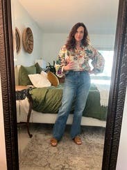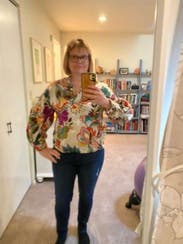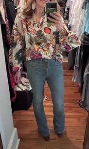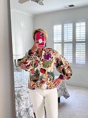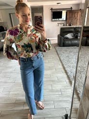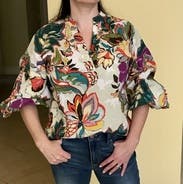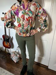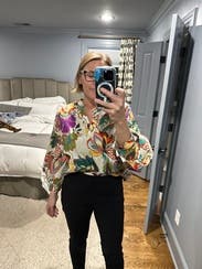 Received many compliments on this floral print blouse. Dressed it up for work and down with jeans for a party.