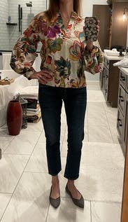 Love everything about this! Perfect fit, vibrant colors, pairs well with wide & straight leg jeans or pants. Very oversized puffy sleeves (aren’t too long at the wrist), so avoid if you don’t like that look.