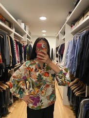 This is a really fun print to wear with jeans or shorts. It is an oversized style, so size down. I rented the medium, but probably would have looked better in the small