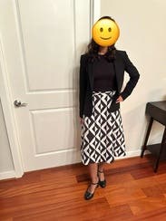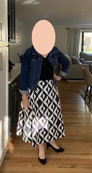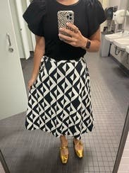I love the print on this skirt, and the weird, yet interesting seaming detailing along the hem. It looked great with a structured black asymmetrical top, and was very comfortable at work all day. I'm planning to wear it again at least once before returning.
