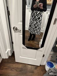 It is very flattering and goes great for work and then for dinners / dates. It hit me at mid calf. If you are shorter, it might fall at an awkward spot but worked great for me! Would love to rent again.