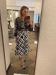 This bold skirt was good to wear to work. I did get some compliments but overall didn’t think it was my style. The fit was true to size and the skirt was quite comfortable.
