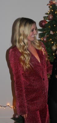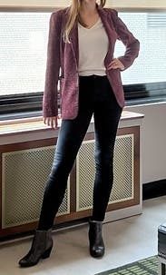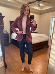 This maroon blazer was the perfect addition to my outfit for a local Aggie event. The maroon color was rich and the sparkles were PERFECTION! The fit was excellent and I felt so slim and comfy the whole night.
