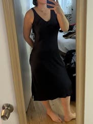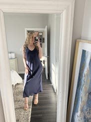 Simple dress - very flattering and good quality. Thought about purchasing but just a little too expensive for a simple slip dress but seriously great.