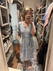 Very cute summer dress that has an elevated casual look. Dress it up with heels or down with sneakers. Lots of compliments!!