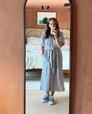 I should purchase this dress. Wore it on a trip to London. Rented it now a second time to wear on a quick trip to Arizona. It’s classy and breezy and so comfortable. In the pic I have it with sneakers but I usually wear it with sandals.
