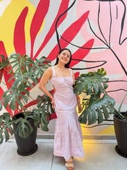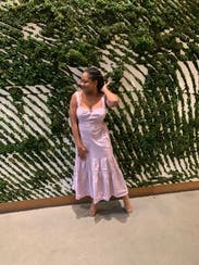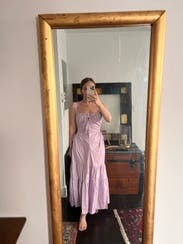 I wore this dress to a NYFW show and after party and I got hella compliments on it! It's super cute, a really different fit and style which I love, and the color is perfect for spring/summer. The only thing I would note is that the straps felt a little long, but it forced me to have good posture which is always a good thing lol. Highly recommend this dress! I actually loved it so much I ended up buying it.