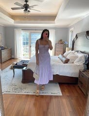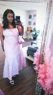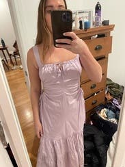 I loved everything about this dress except for the straps - they were weirdly positioned at the very side of your shoulder so they didn't really stay up and kept sliding off to the side. Kind of long as well. Other than that, loved the adjustable cutouts and the lavender color. Dress wrinkles v easily so be prepared to iron (which I clearly did not do haha)