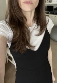 Straps are a bit long so I styled down with baby tee. Loved so much I bought. Fabric doesn’t give so size up for comfort.