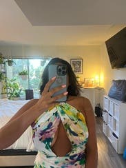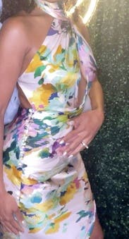 Wanted to love this one, but between the high neck, low back, pattern and weird slit, this dress was just doing too much. Ps the slit cut weird and was more like ‘they ran out of fabric’ and created a gap vs tasteful leg.